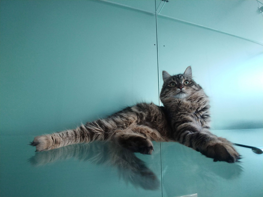 Миниатюрная кошечка Алиса - яркий представитель сибирской породы: очень аккуратная, чрезвычайно чистоплотная, дружелюбная и тактичная. Совсем молоденькая с милейшей изящной мордочкой, рисунчатым окрасом роскошной шерсти и выразительными зелеными глазками, Алиса «грозила» со временем превратиться в респектабельную сибирскую кошку с барской внешностью. А пока подросший котенок, шаловливая и игривая, Алиса с удовольствием носилась за мышкой, катала по всему номеру мячик, ласкалась к котоняням и безуспешно пыталась развеселить соседку Басю - нашу «царевну Несмеяну». А наигравшись-нагулявшись, забавно устраивалась на любимой когтеточке в потешной позе «пузиком кверху», развалившись на спине и подняв вверх передние лапки, отдыхала, набиралась сил :)