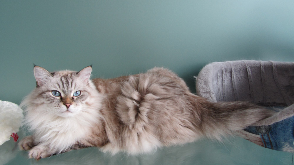 Более скромного и пугливого кота в нашей гостинице мы еще не видели, при этом кличка кота Бакс! Бакс…на ум приходит, что-то серьезное и с характером. Пушистый котик с ярко голубыми глазами скорее Бася, чем Бакс практически целую неделю прятался в своей переноске и выходил только по ночам. Все это время мы уговаривали его, упрашивали покушать, погулять, поиграть и познакомиться с чудесными соседями. После недельных уговоров и множества комплиментов Бакс покинул свое убежище и обнаружил дружелюбных соседей и нас, совершенно не страшных котонянь). Переноска перестала быть убежищем, Бакс в нее больше не прятался. Теперь он подставлял свой пузик, то один, то другой бочок, когда его расчесывали, ластился, мурчал с соседскими котиками и абсолютно не боялся!