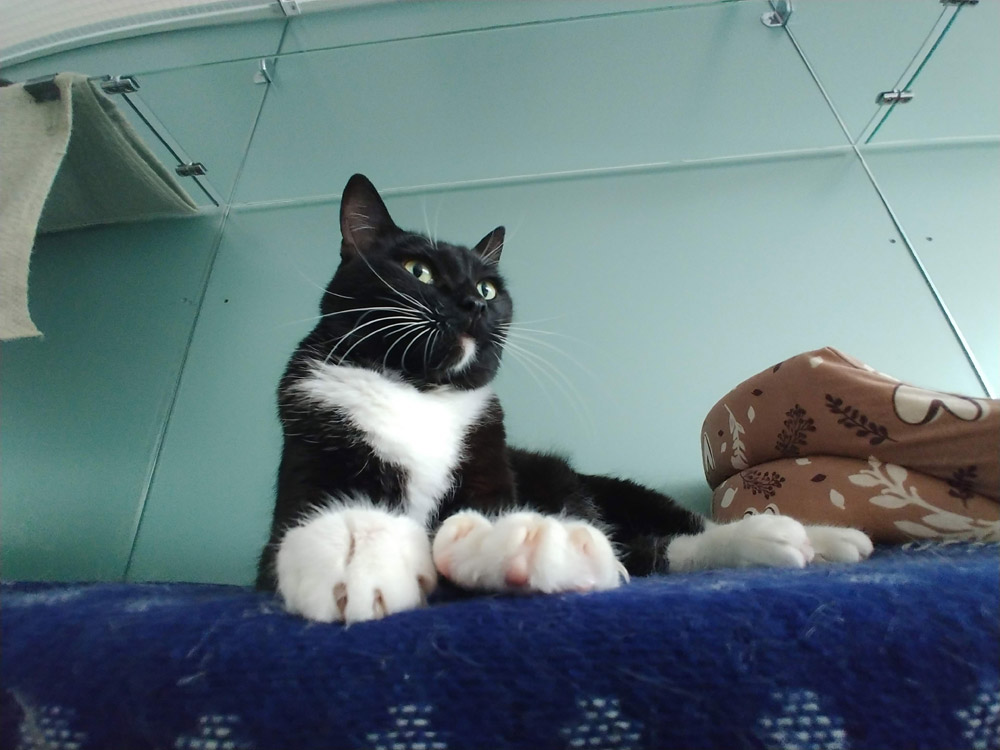 Наш новый постоялец черно-белый котик по имени Чарсик выглядел очень благородно и нарядно: классический мужской костюм- смокинг, безукоризненная белая рубашка и белые тапочки. В случае Чарсика: черная лоснящаяся шубка, белая грудка, ну и, соответственно, белые носочки на лапках. У нас сложилось впечатление, что Чарсик был в курсе своего «смокинг окраса», шутим, конечно. Но то, как Чарсик «держал спину», был сдержанно мил, уравновешен и дружелюбен, всё-таки подтверждает существующее мнение, что черно-белые кошки в большинстве своём обладают отличной стрессоустойчивостью, просты в общении, и совершенно не обидчивы. С нами Чарсик вел себя достаточно ровно; такой себе кот-кот: очень аккуратный, ненавязчивый, никакого панибратства, но и никаких замахов лапой в нашу сторону, ни малейшего намека на недовольство; никаких тебе обнимашек, но и вполне себе мог приласкаться мимоходом и благодарно мягко боднуть. Одним словом, идеальный домашний кот: добрый, мягкий, уравновешенный и дружелюбный. А ещё, Чарсик – счастливый найденыш, из маленького взлохмаченного «котоворобушка» превратился настоящего «смокинг-кота» - преданного и любимого.