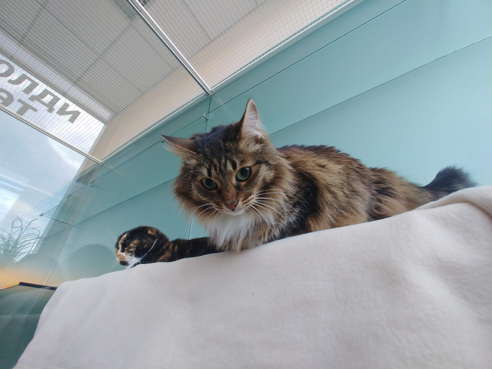 Кошечка по имени Дейзи в шубке цвета табби с огромными ярко зелеными глазами была в этой пятерке самой беззащитной и ужасно робкой. Нам так сначала показалось. Каждый раз, встречая особенного животного, каждый раз мы поражаемся его силе духа и воле к жизни. Мы не знаем истории Дейзи, мы не знаем, что случилось и почему у неё только три лапки, у нас не было возможности спросить её владельцев. Да это и не столь важно, но мы твердо знаем, что такое ласковое существо как Дейзи – большая редкость в кошачьем мире. Столько нежности в этой милой кошечке, столько тепла. Казалось бы, что кошка на трех лапках не должна бегать, с недокомплектом лап-то, но Дейзи вопреки всему бегает, нет, конечно, не на спринтерские дистанции, но ничего себе, перемещается. И какое же это счастье, что у таких кошек есть шанс на жизнь, которого они лишены в диких условиях улицы. И они живут, не мучаются, а живут полной кошачьей жизнью, дарят своё тепло и любовь, мурчат и ластятся. А что касается иерархической лестницы в отношениях с сородичами, то и тут всё сложилось у Дейзи вполне себе удачно, в любом случае, есть чудесный рыжий Жорик, который как правильный и справедливый кот вовремя подставит своё плечо:)
