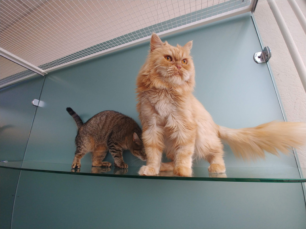 Кот Жорик - рыжий метис с рыжим вздернутым и курносым носом, с ярко оранжевыми глазами имел совершенно хулиганистую наружность. Ещё и сама кличка – Жорик! И мы, конечно, совсем не ожидали, что так ошибемся, Жорик оказался нежным и заботливым существом, любителем обнимашек, расчёсок, а ещё защитником, одним словом, правильным котом. Ситуация, когда в одном номере живут сразу 5 котов, естественно, одних владельцев, у нас в гостинице впервые. Четыре кота – да, пятеро – нет, в первый раз. Жорик был единственным котом в этой пятерке, остальные девочки-кошечки, которые, как это часто бывает, между собой не совсем ладили. Вот Жорик и выступал медиатором кошачьих отношений, сглаживал острые углы, пресекал трения и разногласия, и даже вставал грудью «когда девочки ссорились». Кот Жорик - чудесный рыжик!