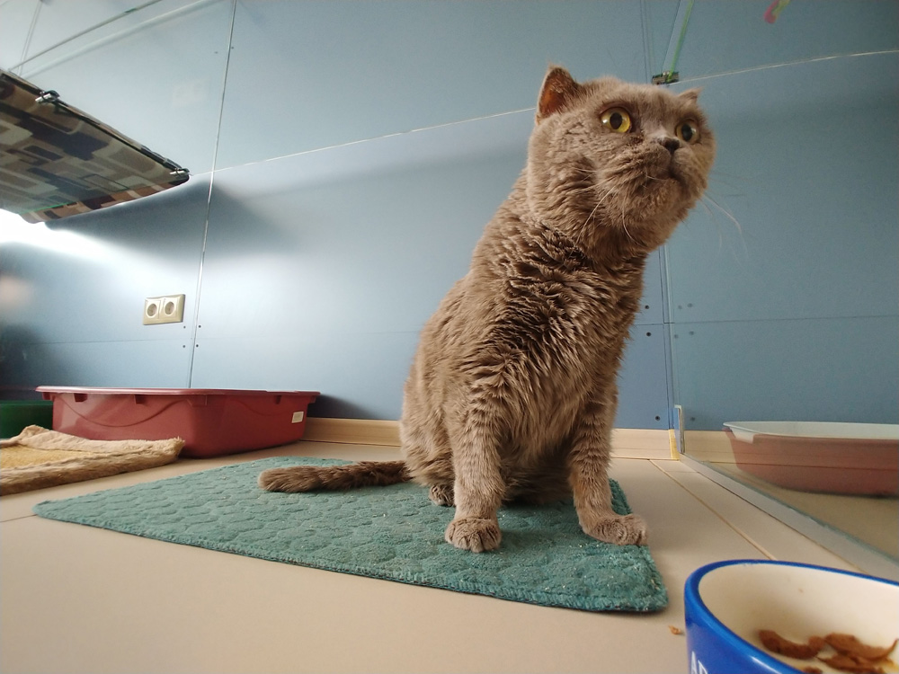 Представляя нам свою питомицу - шотландскую вислоухую кошечку по имени Симона – её владелец ласково называл «моя старушечка». Симона, достигшая почтенного или «пожилого» возраста, была абсолютно не агрессивна, хотя и ласковой её не назовёшь, скорее спокойная и умиротворенная, этакий котофлегматик, который хочет тишины и покоя. Скоттиш фолды более всего ценят собственный покой, а уж тем более скоттиши в возрасте, поэтому Симону мы видели только возле мисок и лотка, всё остальное время она проводила в переноске или на коврике, спала или дремала. Общаться ни с нами, ни соседями не желала, на суету в гостинице вообще не обращала ни какого внимания. Одним глазом присматривала за нашими манипуляциями с мисками и совками в собственном номере и на этом, пожалуй, всё. Мы, конечно, не обижаемся на такое «которавнодушие» и понимаем, что с возрастом в организме кошки начинают происходить различные изменения, о которых надо знать и с которыми нужно считаться, чтобы пушистый любимец жил долго и счастливо!