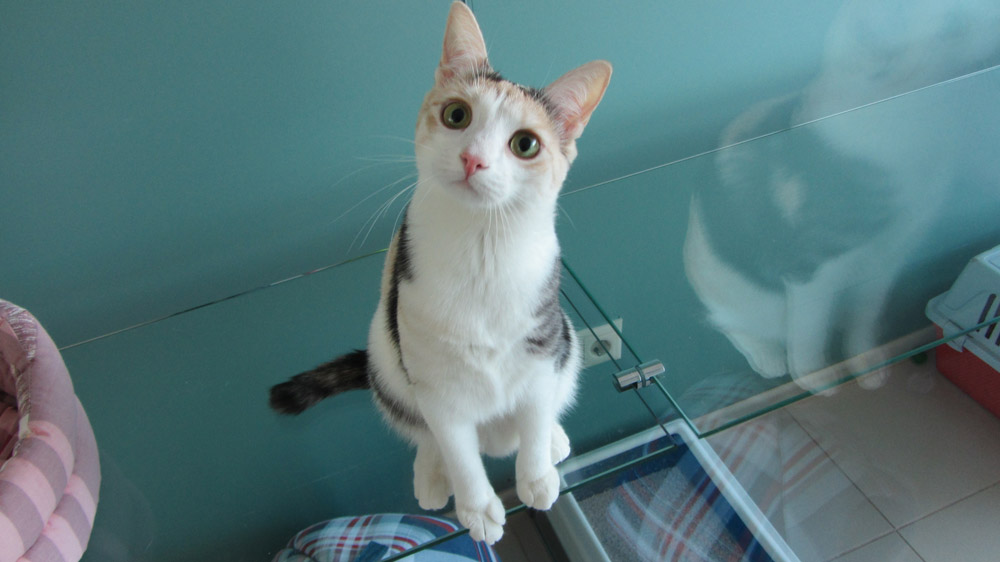 Существует поверье, что трехцветные кошки обладают покладистым и дружелюбным характером, что приносят удачу. Например, в Америке их даже иногда называют денежными кошками (money cats). Малышка Тиа оказалась девочкой очень пугливой, но со временем подружилась с нами, чему мы были очень рады. Кстати, еще про трехцветных кошек бытует мнение, что их сложно приучить к лотку, что они очень своенравные и упрямые. Сложностей с лотком мы не заметили, но то, что Тиа любит брызгать водой и разбрасывать корм, это точно... проказница)