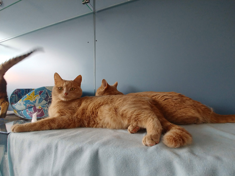 У нас гостили сразу два рыжика одних владельцев: чудесная кошечка по имени Тиша и застенчивый котик Джокер. Сразу два исключения из привычных расхожих правил про рыжиков. Тиша – гармонично сложенная кошка, с красивой головой, ярко рыжими глазами и аккуратным розовым носиком. Очень выдержанная, спокойная и невероятно милая, с детским, наивным и доверчивым выражением мордочки. Дружелюбная, именно она первая бесстрашно пошла на контакт с нами, продемонстрировав для Джокера абсолютную безопасность и хрупкий баланс доверительных отношений.